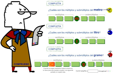 En esta primera entrada os pongo el enlace a un sitio con juegos con unidades de longitud, masa y capacidad. Deberéis completar la primera pantalla correctamente para obtener una contraseña con la que poder continuar.